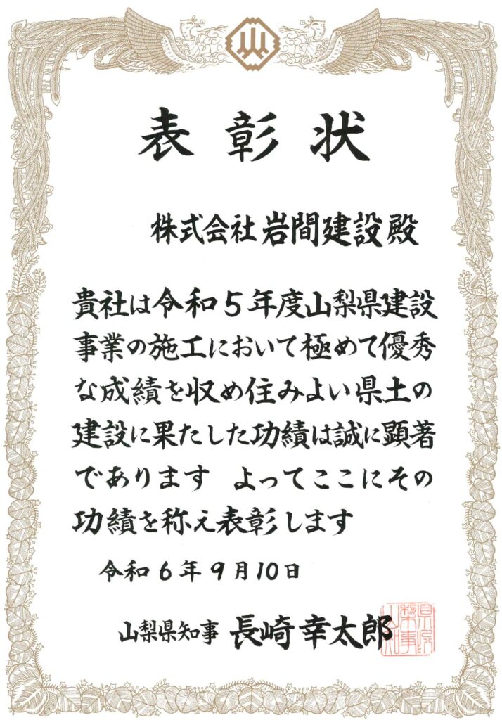 | 建設業許可 | 山梨県知事許可(特-3)第5450号 |